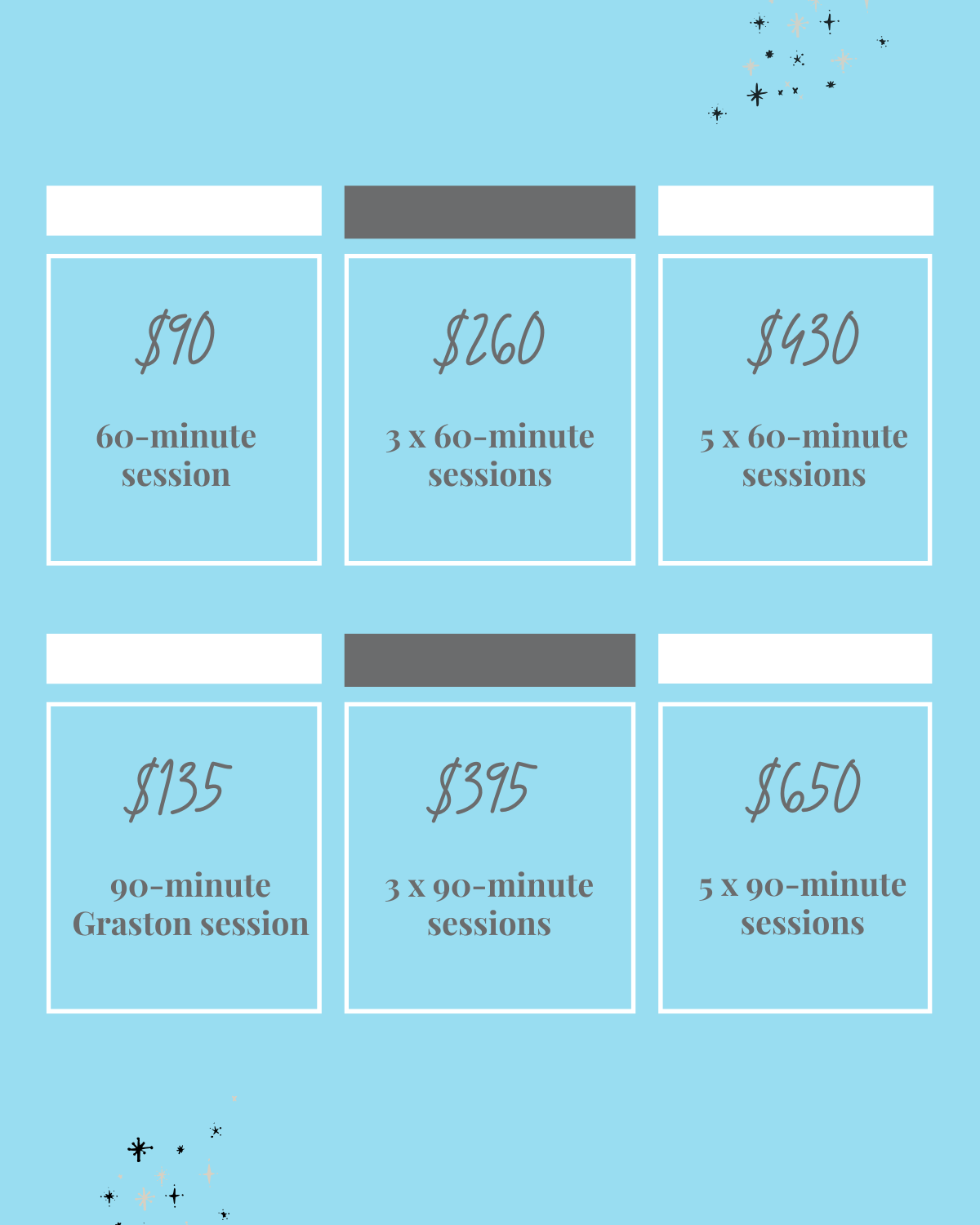 60 minutes of Graston Technique, Gliding Cupping, and therapeutic Stretching